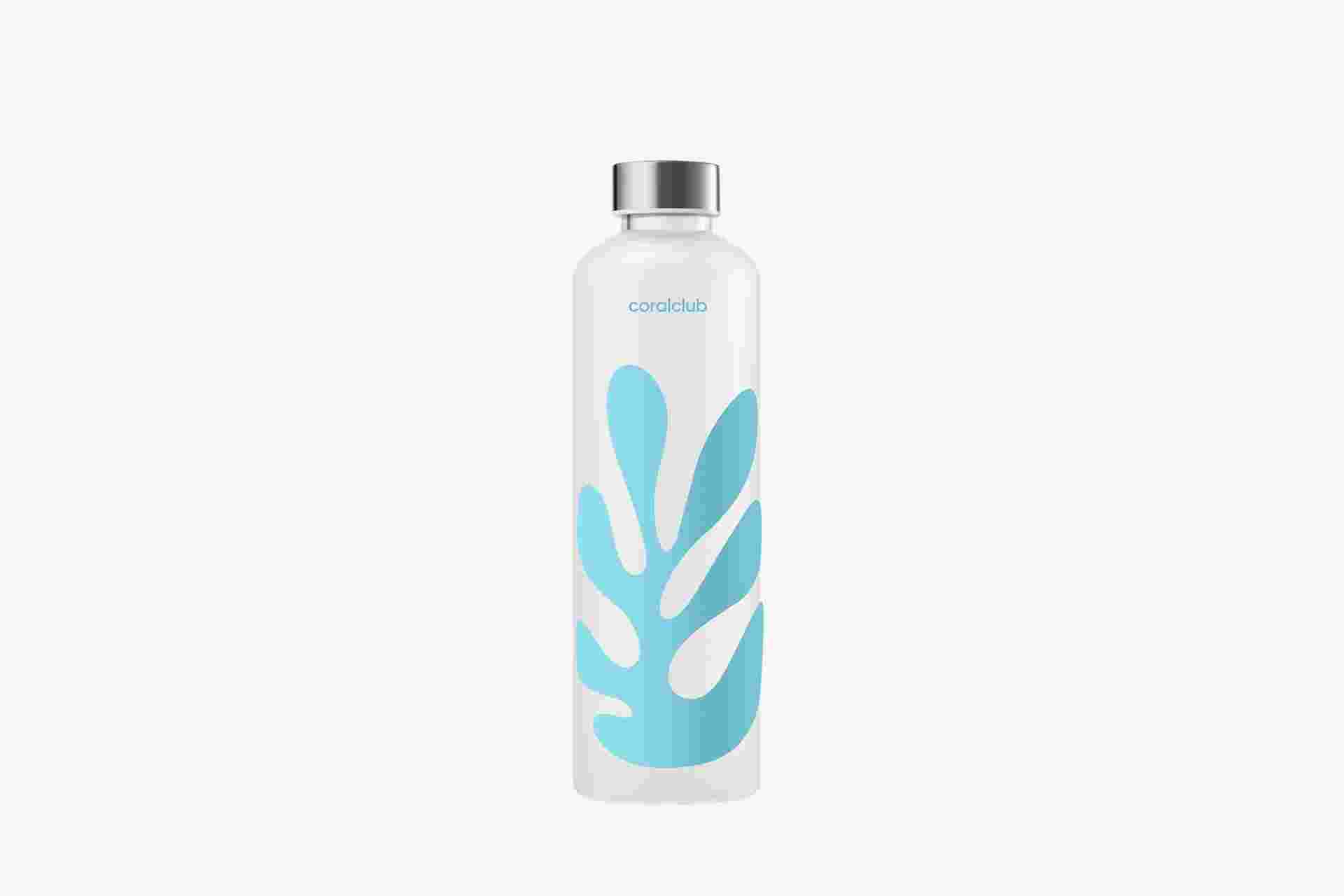 Una bottiglia in vetro borosilicato creata appositamente per il 25° anniversario di Coral Club.