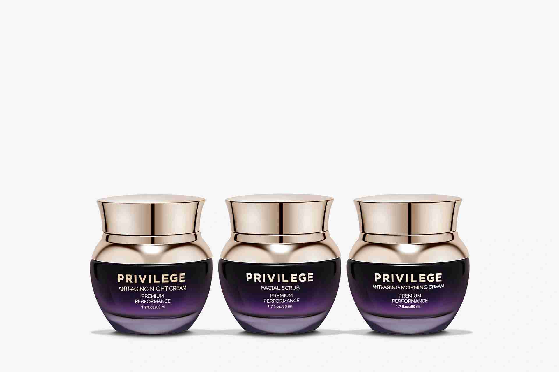 Nutrimento e idratazione 24/24 con la formula di bellezza Privilege! Il kit comprende tre prodotti per la cura della pelle giorno e notte.